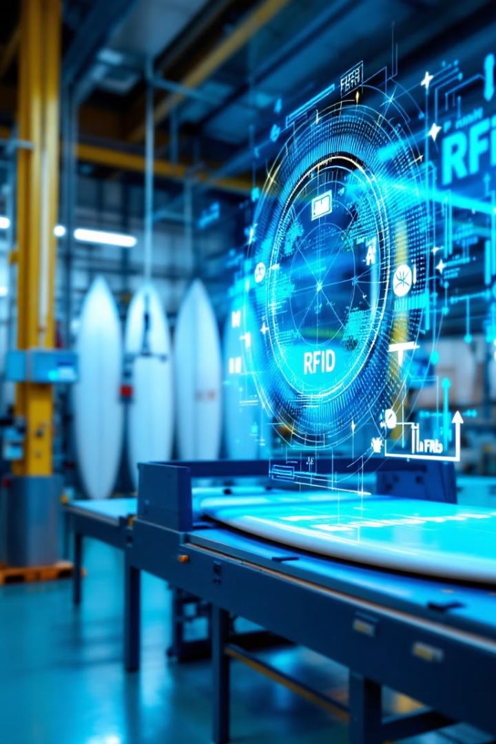 嘿!這只是比喻!!我想要說的是,已經有很多製造國際級規格的運動裝備廠家,在運動裝備開始製造時的原始物料中,就已經將RFID標籤嵌入於物料裡面;就以剛剛說的滑雪板裝備為例,滑雪板從原始物料開始,經過切割、印刷、壓膜和包裝的各項製程中。位於每個工位上的RFID讀取器都會在物料標籤到達工作站時被讀取到該物料獨特的 ID,透過網路連接將「工單」、「物料ID碼」、「讀取時間」等資料傳輸到後台MES系統,從而讓後台系統更新其產品線的組裝狀態。物料ID碼 會與員工ID碼在該工位的時間進行相關聯綁定,這樣系統就可以自動記錄該員工ID於該工位的工作績效。請特別留意這種不起眼的綁定作業,對於「缺工」嚴重的當今,業者可以使用這樣的手法輕鬆記載「正職」或是「兼職」人員的上工表現狀態,成為業主加給的數據依據,一翻兩瞪眼!