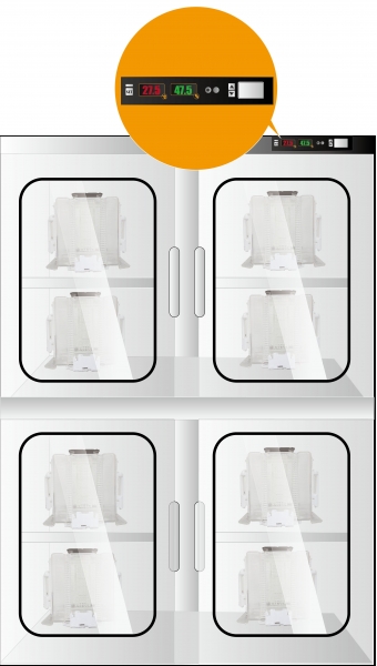 智慧節能氮氣櫃是利用溫濕度值控制氮氣的輸入,當濕度或溫度超過設定值時,控制系統會自動輸入氮氣;當溫度或濕度降到默認值後,控制系統會自動停止氮氣輸入,避免大量地氮氣浪費也同時避免無效乾燥的狀況,另外控制系統還具備了AIoT連網的能力,溫溼度資訊不斷地往後台管理輸出溫溼度值,一旦出現異常狀態,後臺管理系統會主動發出警報,讓產線的維修工程師盡速前往處理,避免長時間的溫溼度失控,造成產品的異常。氮氣櫃前方同時具有LED面板可供用戶清楚地在看到面板上乾燥的數據,當溫溼度達到所設定數值時,將會停止氮氣無謂的輸入,真正達到有效的控制,節省龐大的氮氣費用。